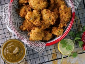 -In a wok,heat cooking oil & fry rice pakora on medium flame until golden brown & crispy.