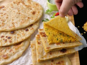 -Heat griddle,add cooking oil & fry paratha from both sides until golden brown (makes 4-5).
