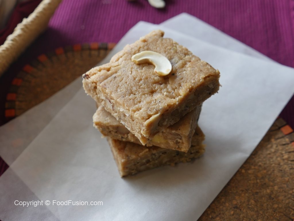 Kaju sa decorate karein aur pieces mein cut ker lein.