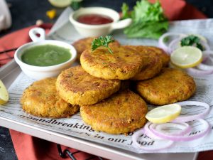 Grease hands with oil,take small quantity (60g) & make kabab of equal sizes (makes 19-20).