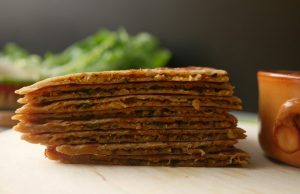 Take a small whole wheat flour dough,sprinkle dry flour and roll out with the help of rolling pin & set aside.
