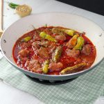 -Add fried stuffed chillies in mutton gravy,lemon juice,cover & cook on low flame for 3-4 minutes.