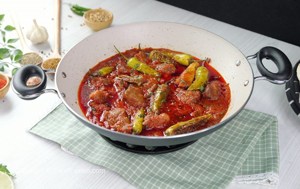 -Fried stuffed chillies ko mutton gravy mein dal dein aur lemon juice dal ker dhak dein aur halki ancch per 3-4 minutes kliya paka lein.