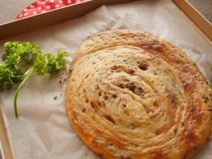 Take a dough,sprinkle dry flour and roll out with the help of rolling pin (roll as thin as possible).