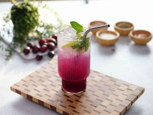 -Serving glass mein crushed ice,lemon slices,podina,tayyar syrup (3-4 tbs) aur carbonated/sparkling water dal ker stir ker lein & serve karein!