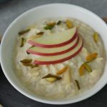 In serving dish,add apple kheer and garnish with apple slices,pistachios and almonds.