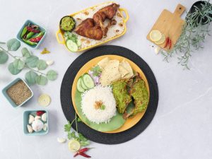 -Fried chicken piece ko meat mallet ki madad sa pound karein aur tayyar spicy sambal laga lein.