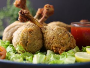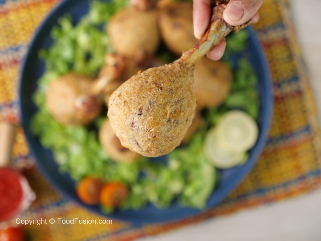 -Ab drumsticks ko maida mein coat karein aur pheetay hoye anday mein dip ker lein.
