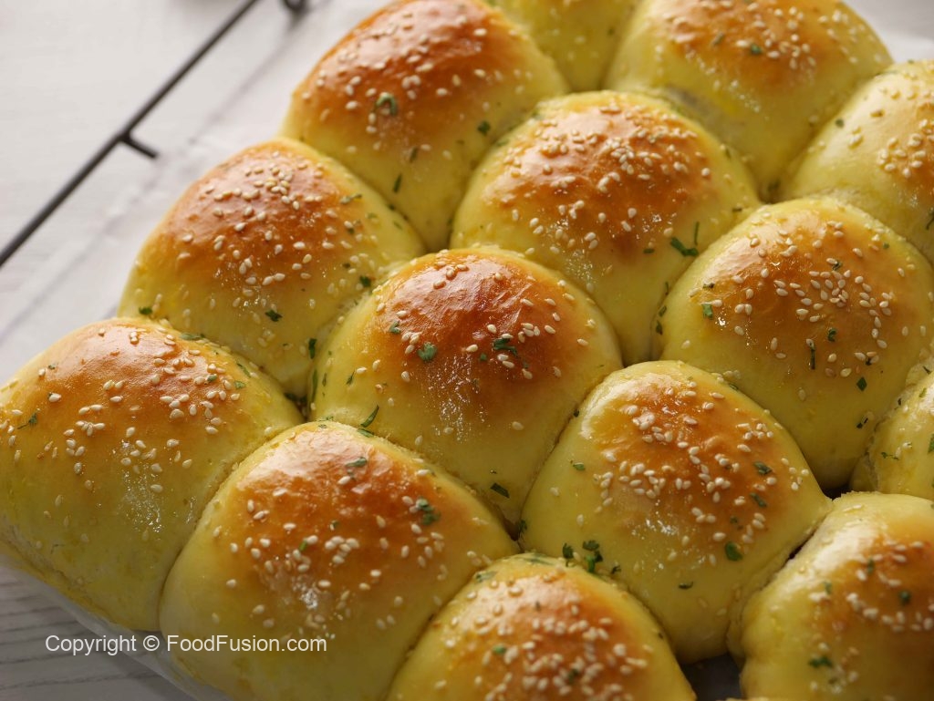 -Stuffed buns par brush karein aur til chirak dein (makes 16).