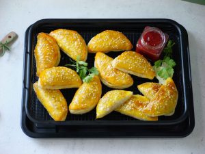 -Apply egg wash & sprinkle sesame seeds (makes 24-26).