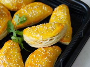 -Maida chirak dein aur puff pastry rakh ker rolling pin ki madad sa bail lein.