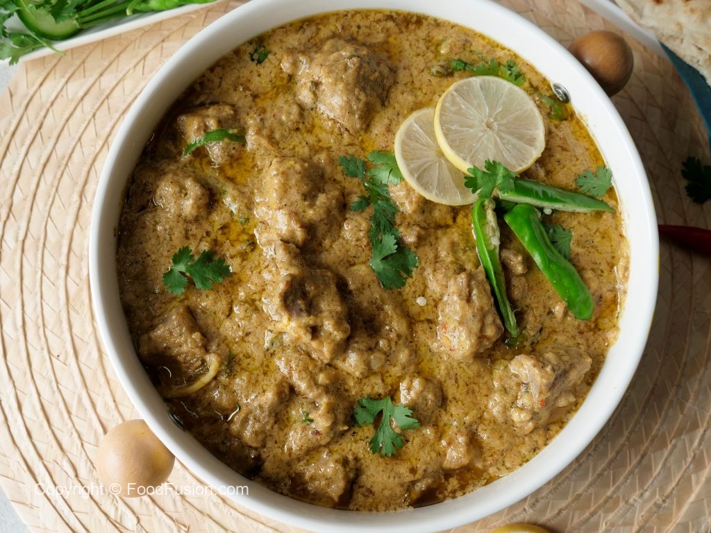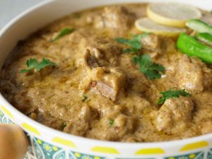 Bowl mein beef,dahi,kacha papita paste,adrak lehsan paste,lemon juice,sabut dhania,kali mirch powder,haldi powder,zeera,lal mirch crushed aur namak dal ker ache tarhan mix karein aur dahk ker 1 hour kliya marinate ker lein.