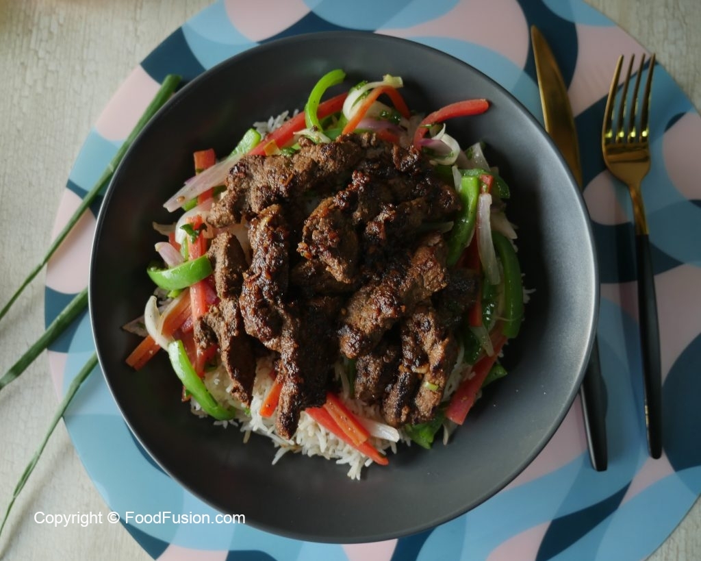 A complete meal that everyone will love. Try Beef Steak Strips Rice Bowl and enjoy your meal. #HappyCookingToYou #RafhanCornOil #FoodFusion