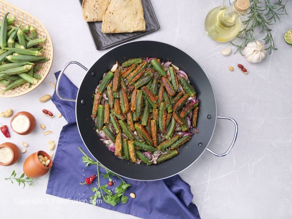 -In a frying pan,add cooking oil,stuffed okra & cook on low flame for 12-15 minutes & set aside.