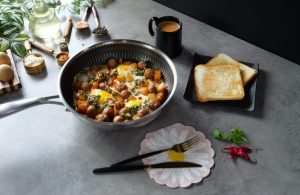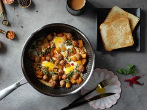 -In same frying pan,add cooking oil,onion,potato,mix well & cook on medium flame for 2-3 minutes.