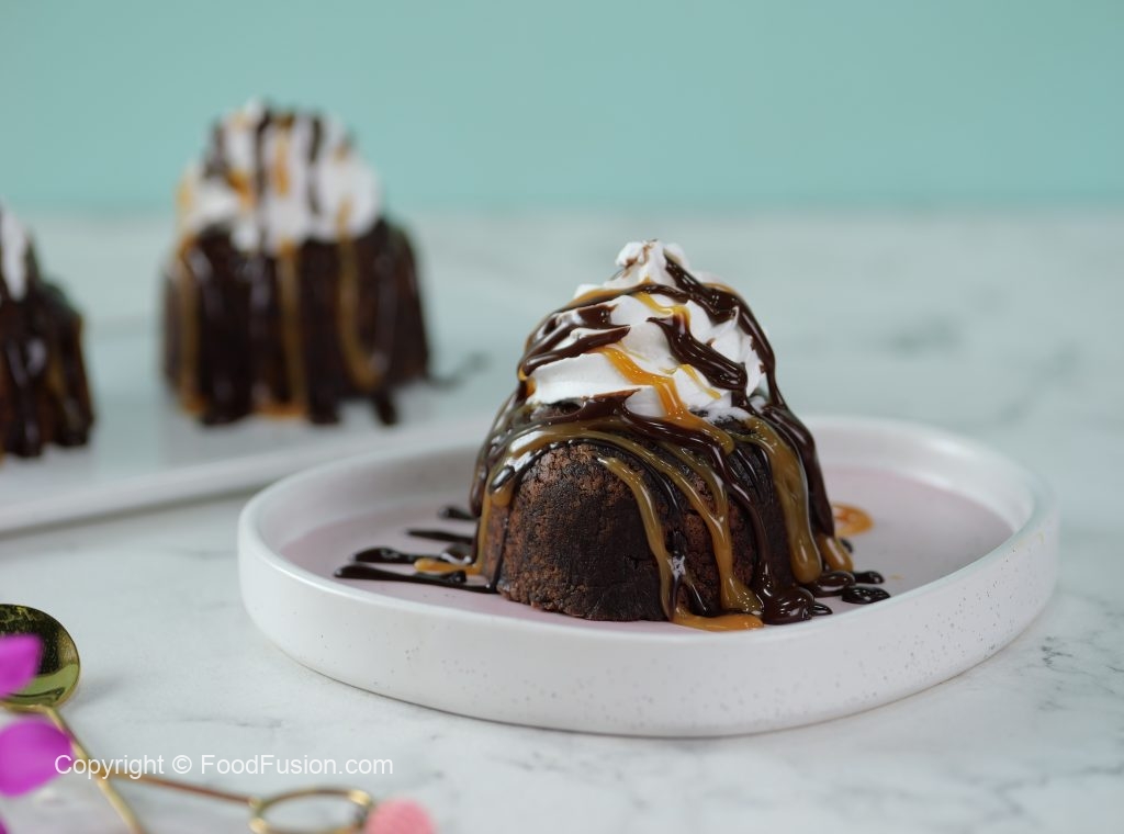 -Brownie bomb ko cling film sa remove ker ein aur serving plate per invert ker lein.