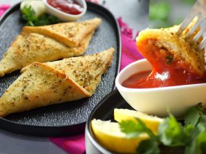 -On a cast iron griddle,add cooking oil,seasoned fillets & cook on medium flame from both sides until done (6-8 minutes) & apply cooking oil in between then cut into pieces,chop roughly & set aside.