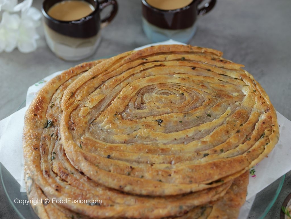 -On griddle,add clarified butter,let it melt & fry paratha from both sides until golden brown (makes 5).