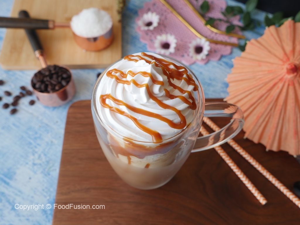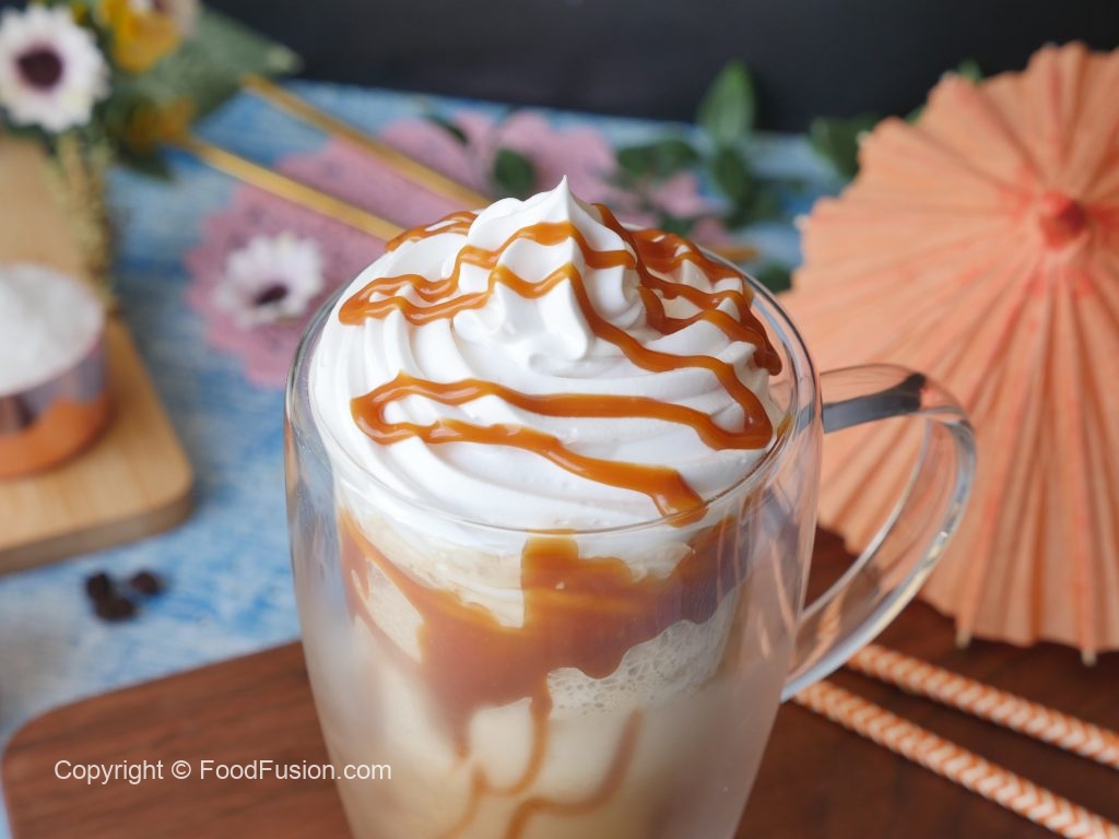 Caramel Frappuccino best summer treat for your cravings. Now you can make it at home and enjoy restaurant quality taste. #HappyCookingToYou #FoodFusion