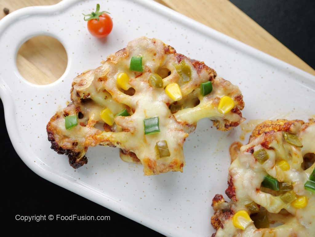 -Cut whole cauliflower in half inch disc shape.