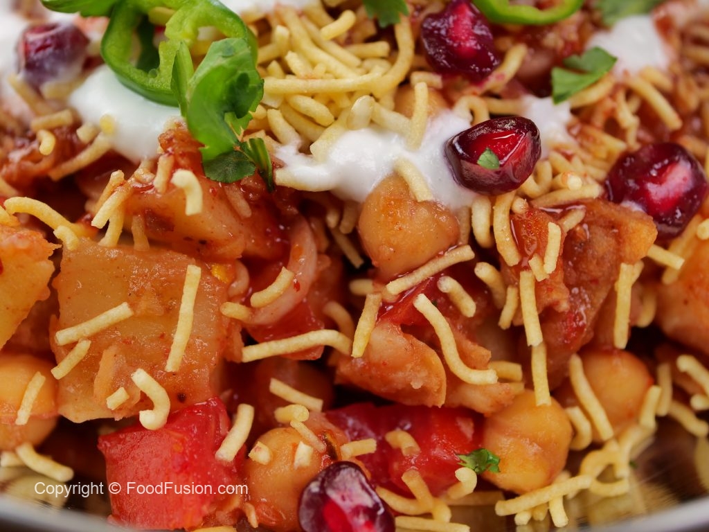 -Dish out in a serving plate,garnish with nimco sev,prepared imli ki lal chutney,yogurt,pomegranate,fresh coriander & green chilli & serve!