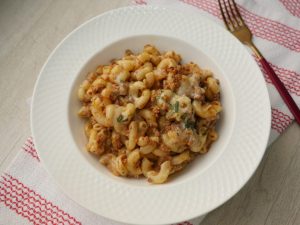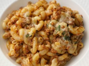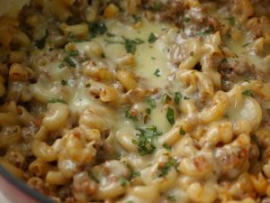 -Boiled elbow macaroni shamil karein aur mix ker lein.
