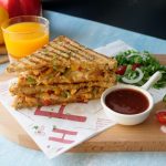 Flip the sandwich and grill on low flame until cheese melts (makes 4 sandwiches).