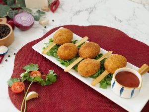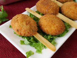 -Coat with all-purpose flour then dip into whisked egg then coat with breadcrumbs (makes 19-20).
