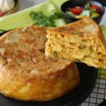 -Dip the next two spring pastry into the whisked eggs and lay on the top and again add chicken tikka filling,cheddar cheese & mozzarella cheese.Repeat 2 layers of roll sheet & filling.