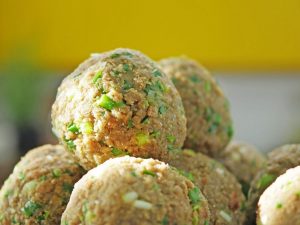 Grease your hands with cooking oil,take a chicken mixture and roll it.