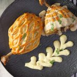 -Take chicken tikka piece, debone the thigh keeping leg piece, and carefully make deep pockets.