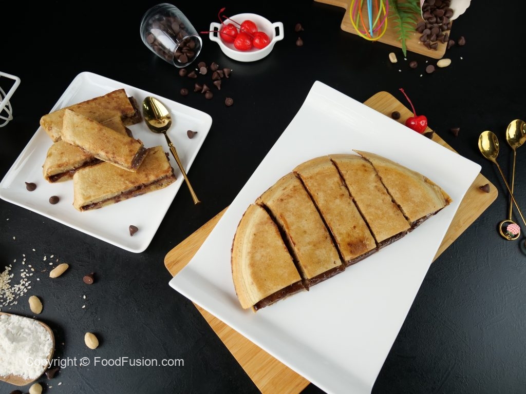 Chocolate Apam Balik Crepes – Famous Malaysian street Food Recipe by Food Fusion. Just like a large pancake cooked from one side and topping from other. So this time add a little twist to your menu. #HappyCookingToYou #FoodFusion