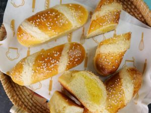 -Grease 5” x 2” oval shape mold with butter (you can use any mold of your choice) & place it on a small bun tray greased with butter,place dough inside the oval mold,cover & let it proof for 30 minutes.