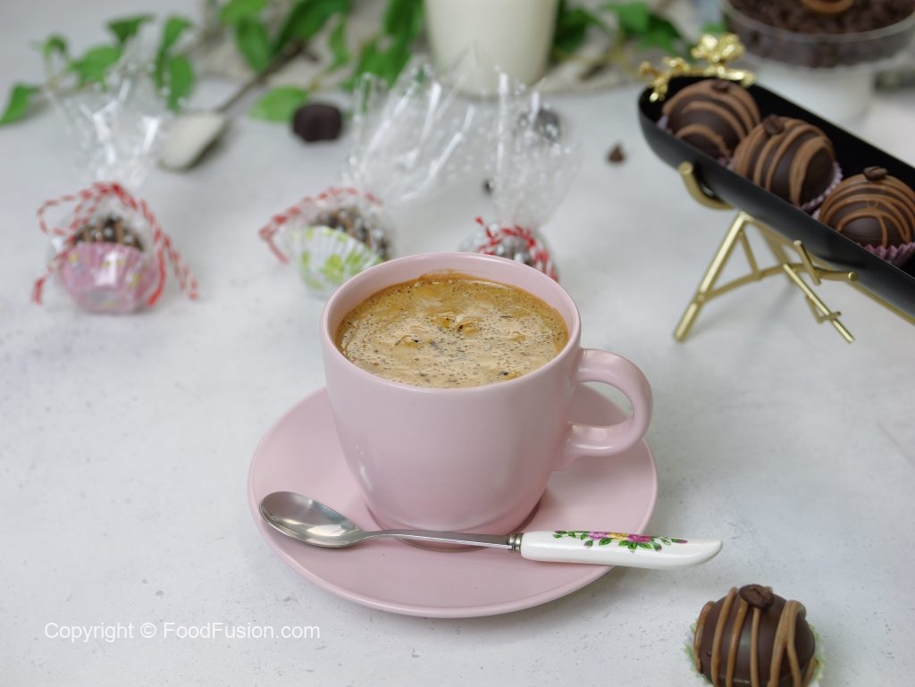 -To make coffee,in a cup,add prepared coffee bomb,pour hot milk & stir.