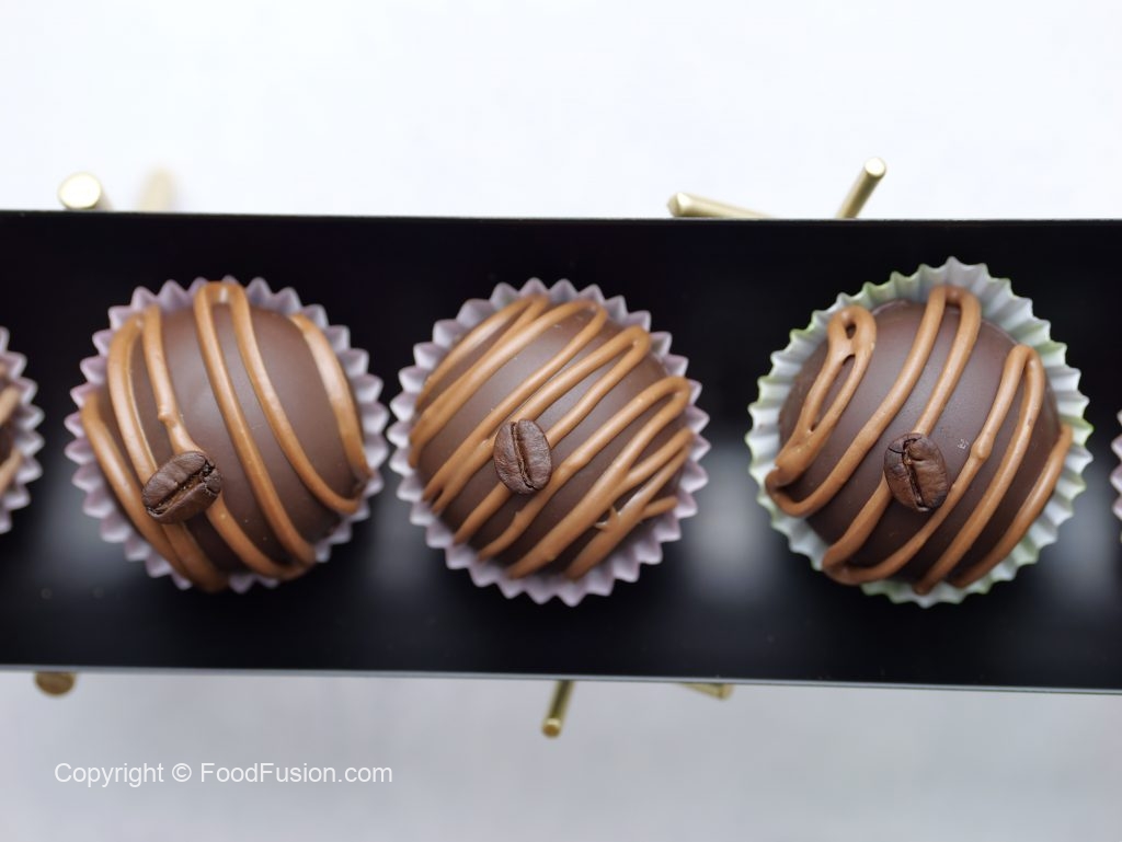 -Drizzle melted chocolate & garnish with coffee bean (makes 14-15).