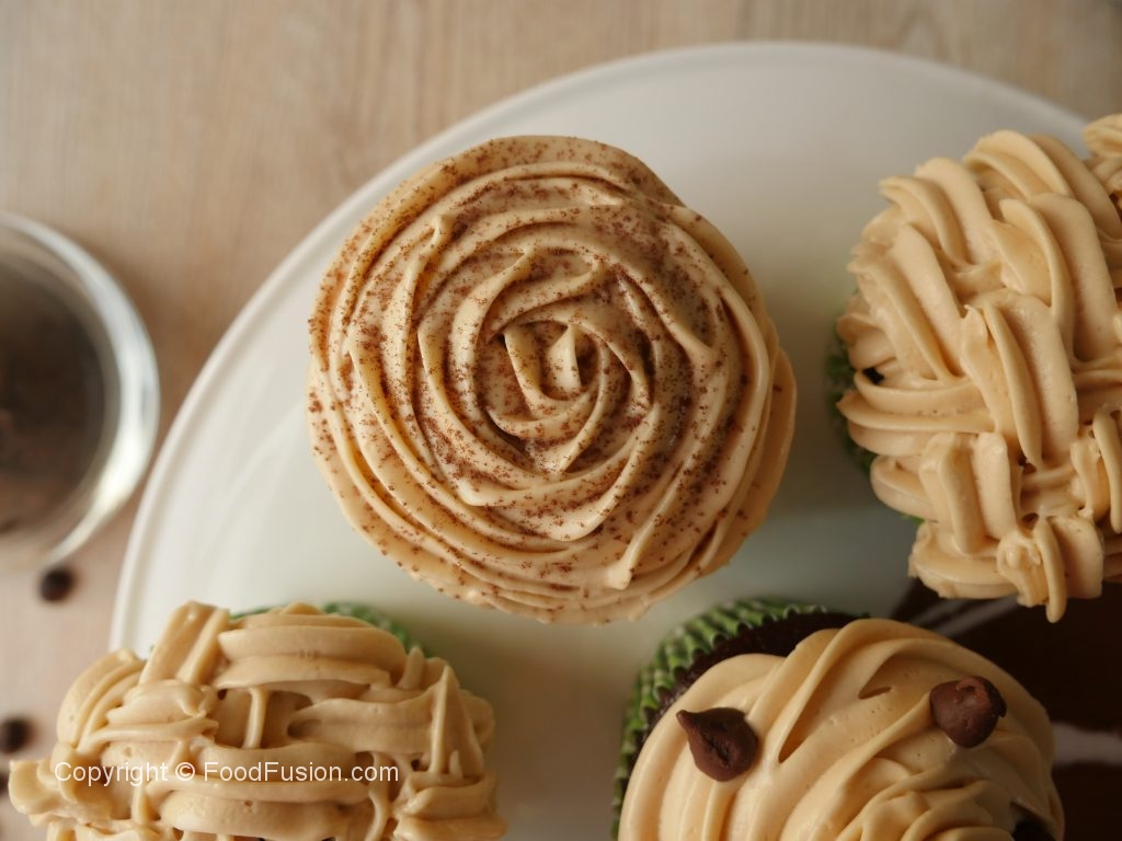 Cupcakes ko cooling rack per rakh ka thanda ker lein,jab thanday ho jayein tou piping bag mein frosting dal ker cupcakes per laga lein aur coffee or chocolate chips sa decorate ker lein.