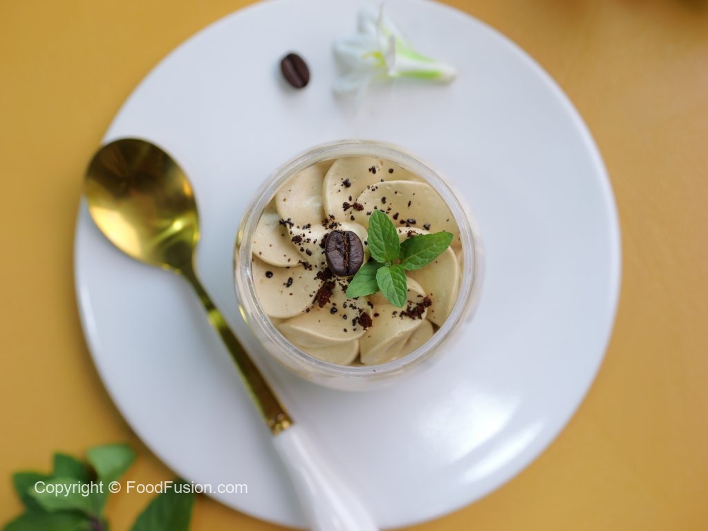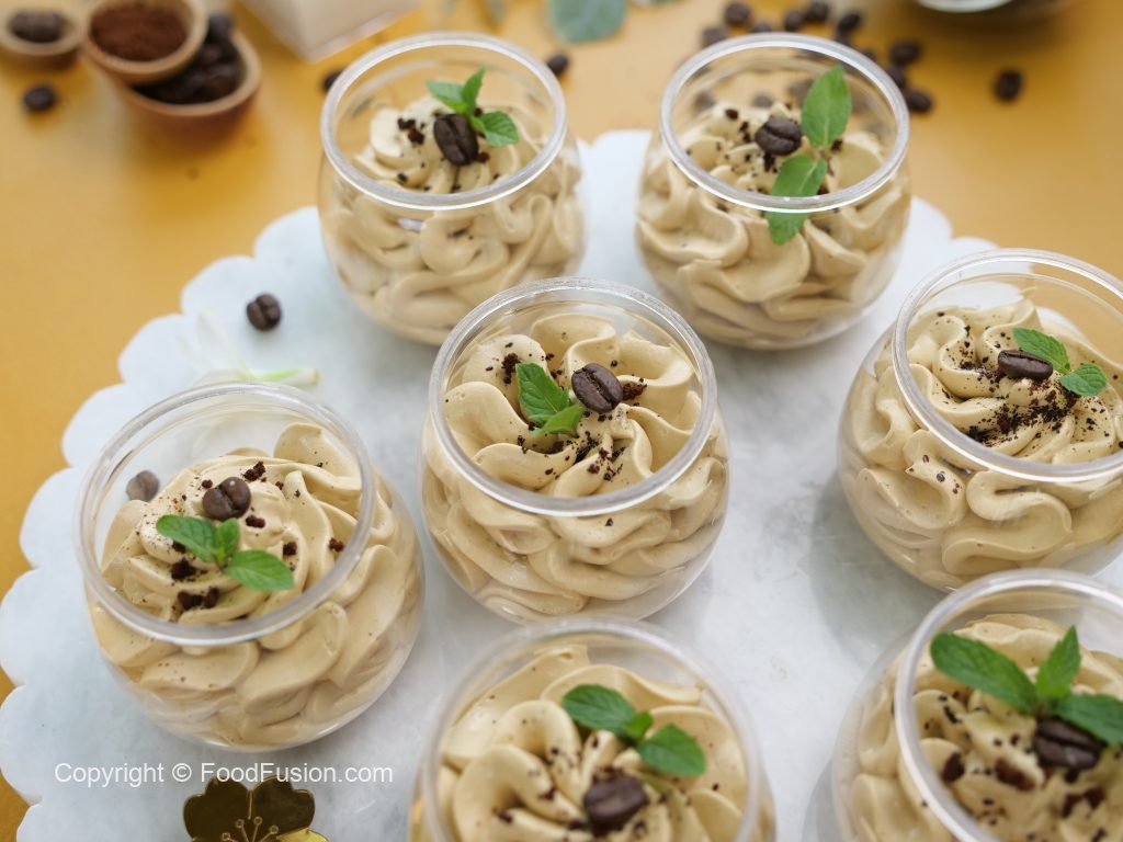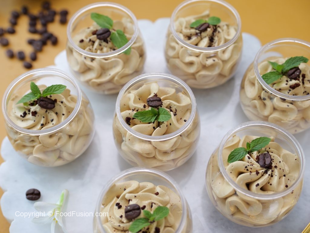 -Instant coffee sprinkle karein,coffee beans aur podina sa garnish ker ka thanda serve karein (makes 10-12 cups).