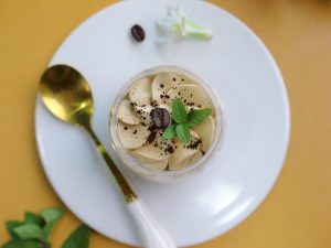 -Sprinkle instant coffee,garnish with coffee beans,mint leaves & serve chilled (makes 10-12 cups).