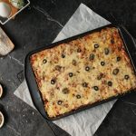 9x12 inch baking tray ko cooking oil sa grease karein aur liquid dough ki half quantity dal ker evenly pheela lein aur few times tap karein.