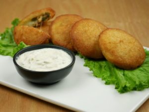 In bowl,add chicken,peas,potato,coriander,red chili,black pepper,salt,mozzarella cheese and Olper’s cream,mix well.