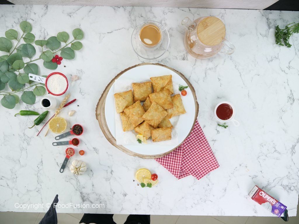 As the name suggests these creamy Chicken Lifafa Samosas are uniquely folded like a envelope with creamy chicken filling, Now you can make and freeze them at home for ramazan. #happycookingtoyou #foodfusion #digitalammi #arraywah #samosa #easyramadanrecipes #OlpersDairyCream #GoodnessBarhao