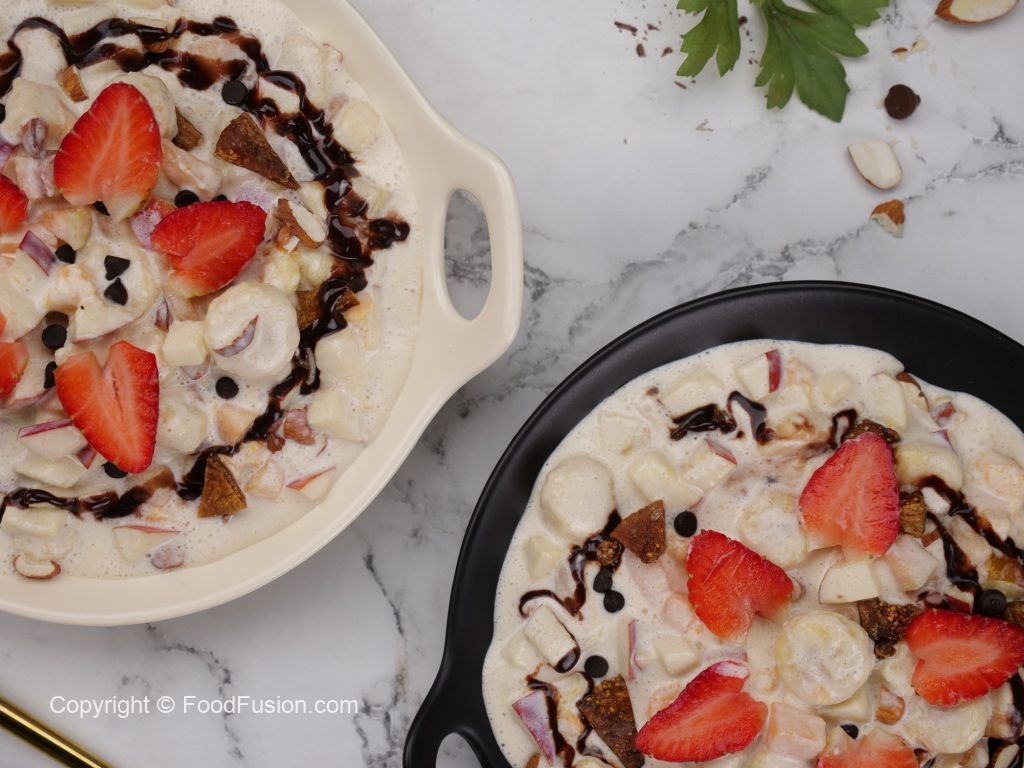 A wonderful addition to any iftar table or special occasion, this Creamy Fruit Chaat is the perfect blend of sweet and salty, made with the goodness of Olper’s Dairy Cream. #OlpersDairyCream #GoodnessBarhao! #FoodFusion #happycookingtoyou #olpersdairycream