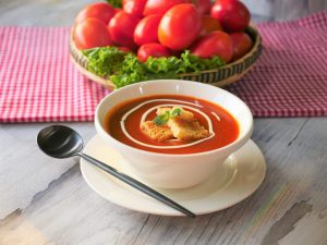 -In a bowl,add cream & add ½ cup of soup in cream to temper it.