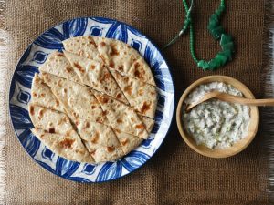 -Add oil/clarified butter, spread on roti, add dry flour.