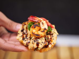 -Add marinated shrimps & fry until golden (2 minutes each side).