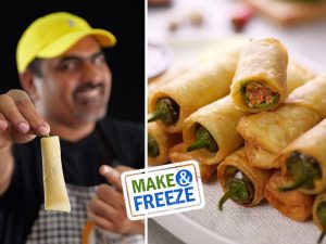 Wash and pat dry green chilies,slits green chilies from center and fill the green chilies with prepared spice mix.