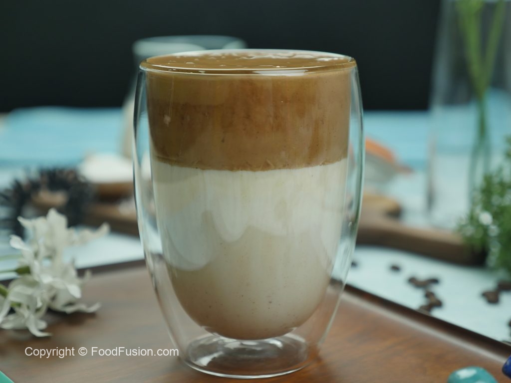 Serving glass mein doodh,2-3 scoops mocha coffee mix top per dal ker serve karein.