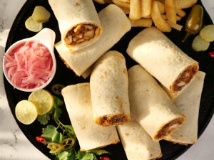 -Shawarma bread ko kitchen cloth mein cover ker ka rakhein (makes 7).