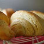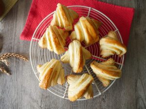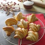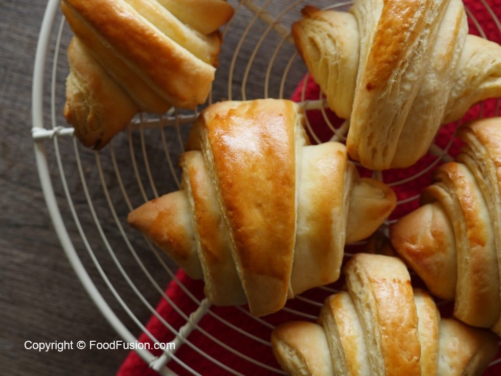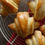 Place the croissants on the greased baking tray. Folding end must lay down.