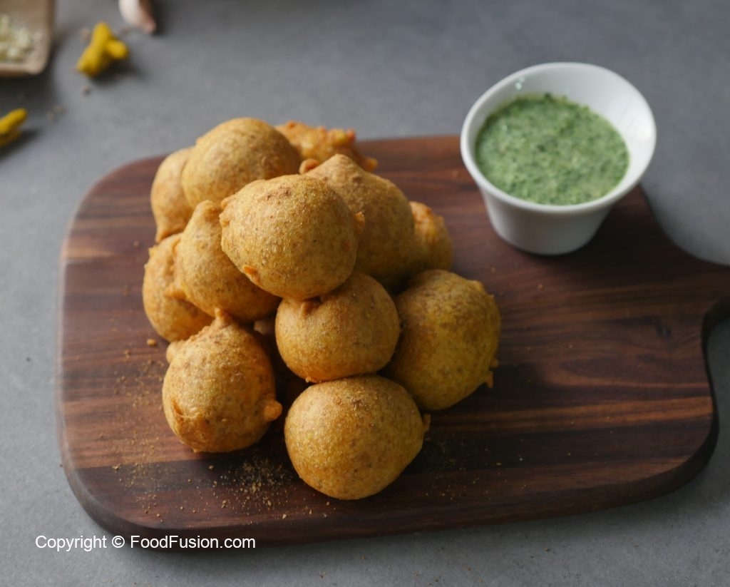 Take a mixture and make balls of equal sizes then dip into prepared batter.